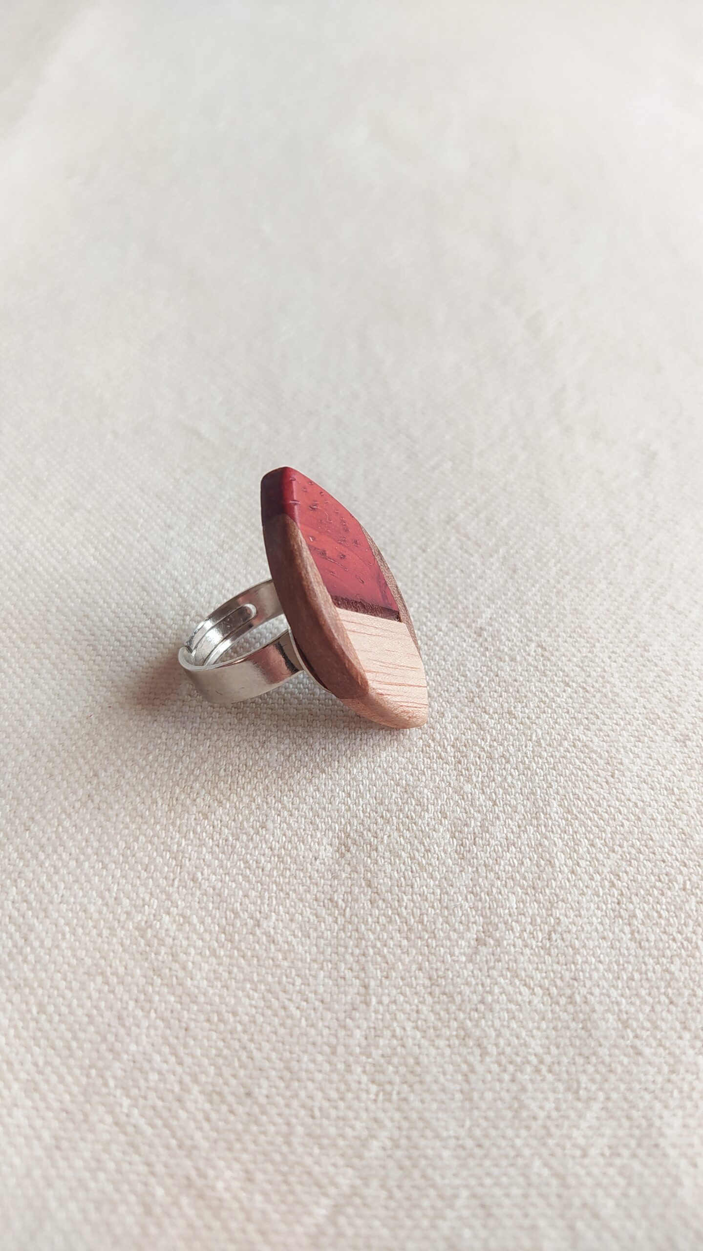 Bague ajustable en bois d’acajou, cèdre et noyer