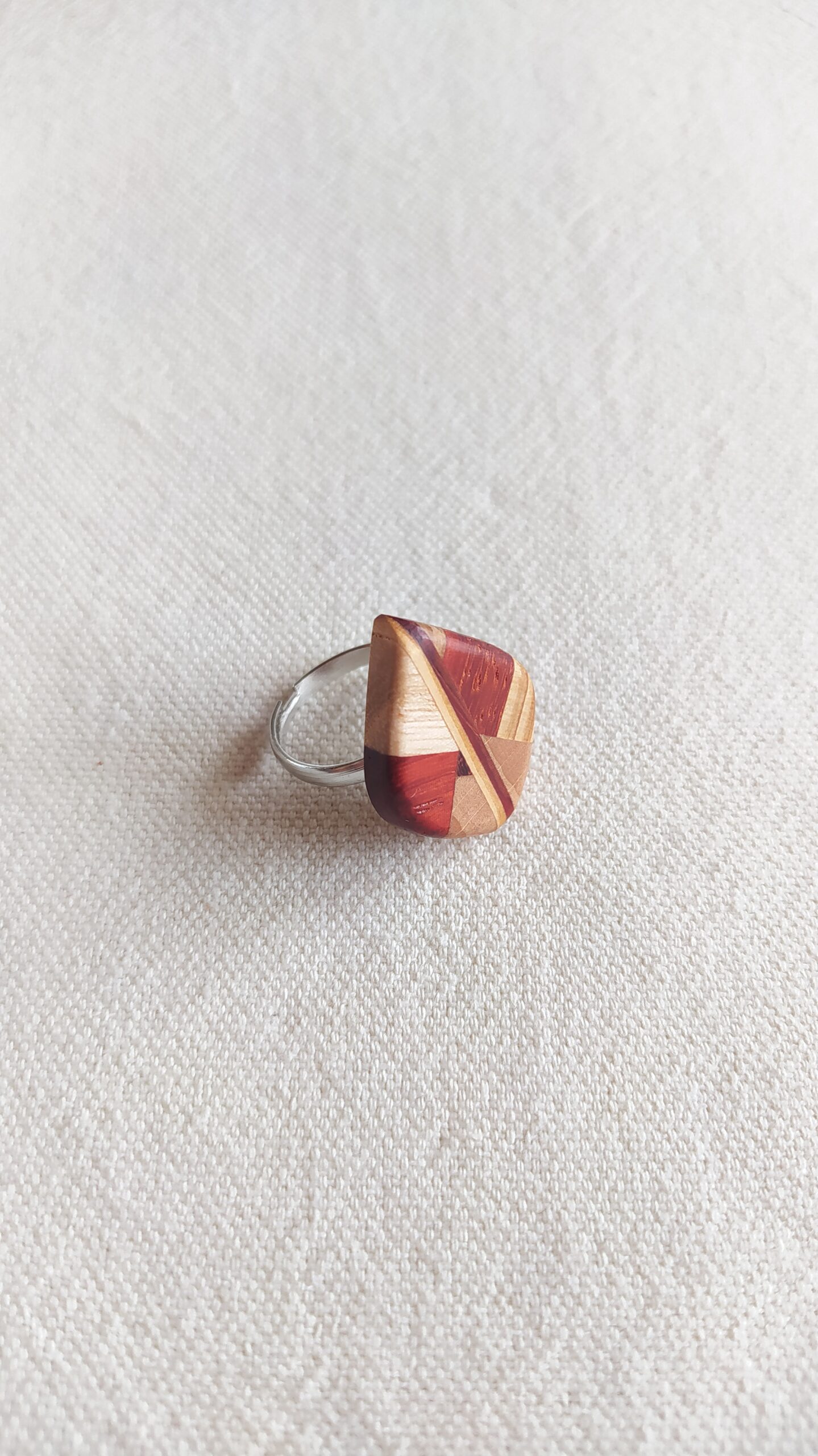 Bague ajustable en bois de frêne, padouk, noyer, acajou et chêne