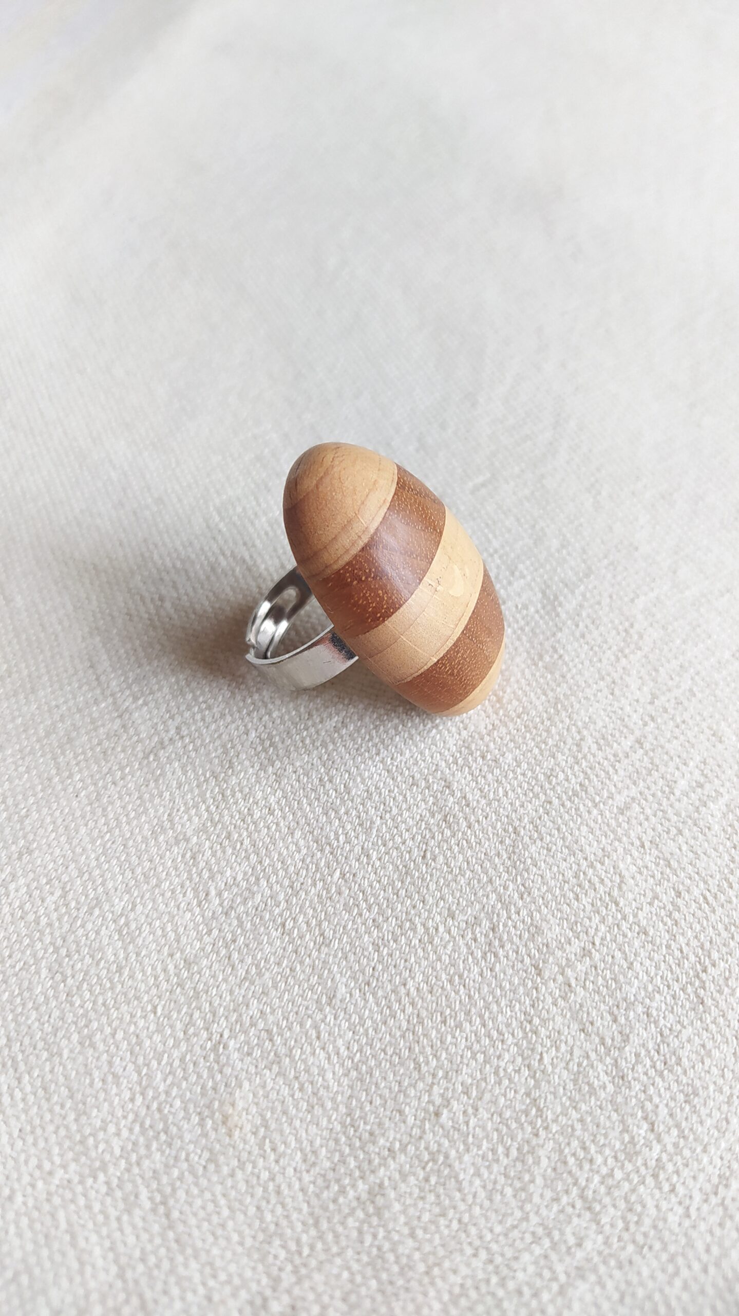 Bague ajustable en bois de frêne et noyer