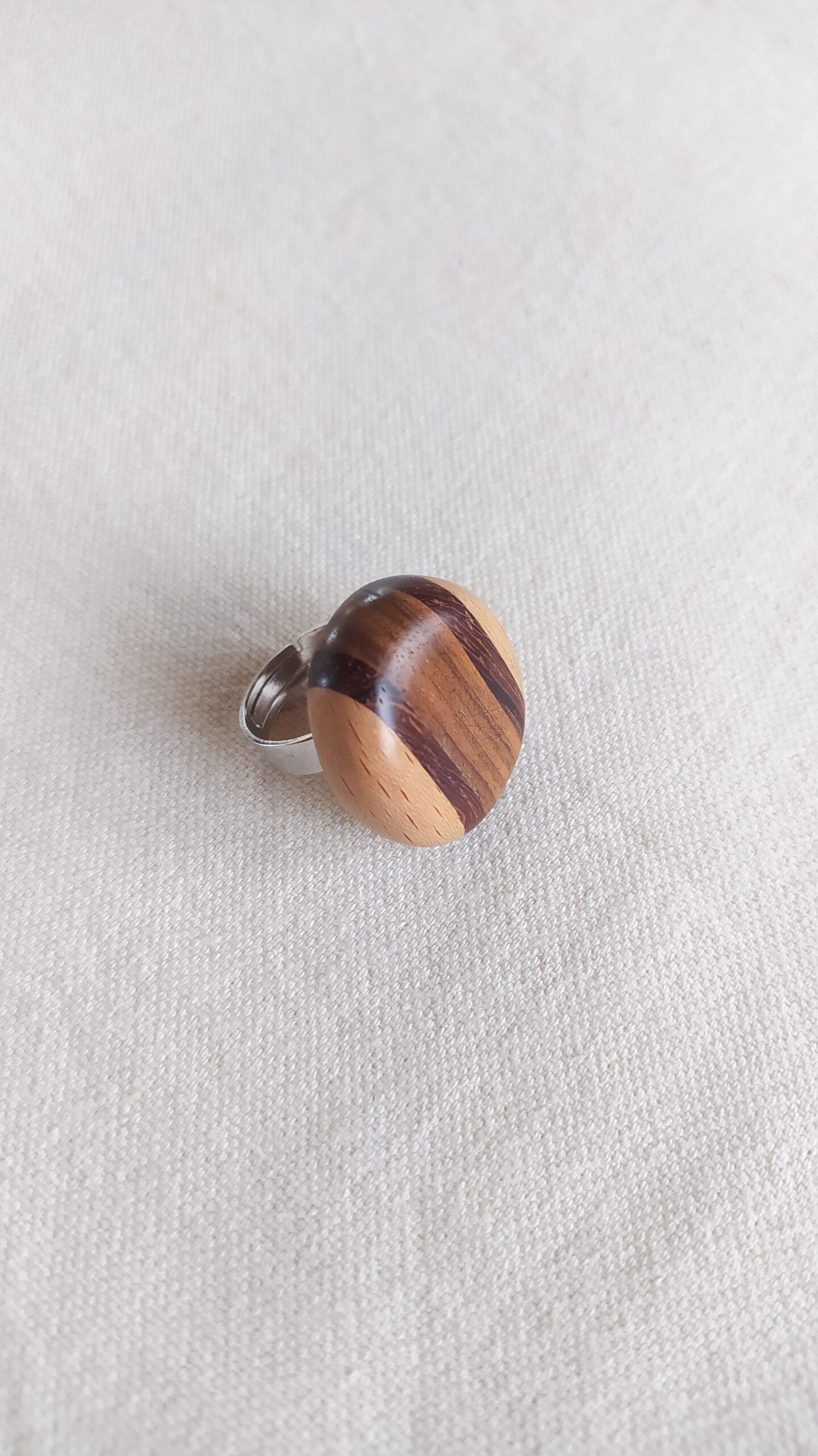 Bague ajustable en bois de frêne, padouk et noyer