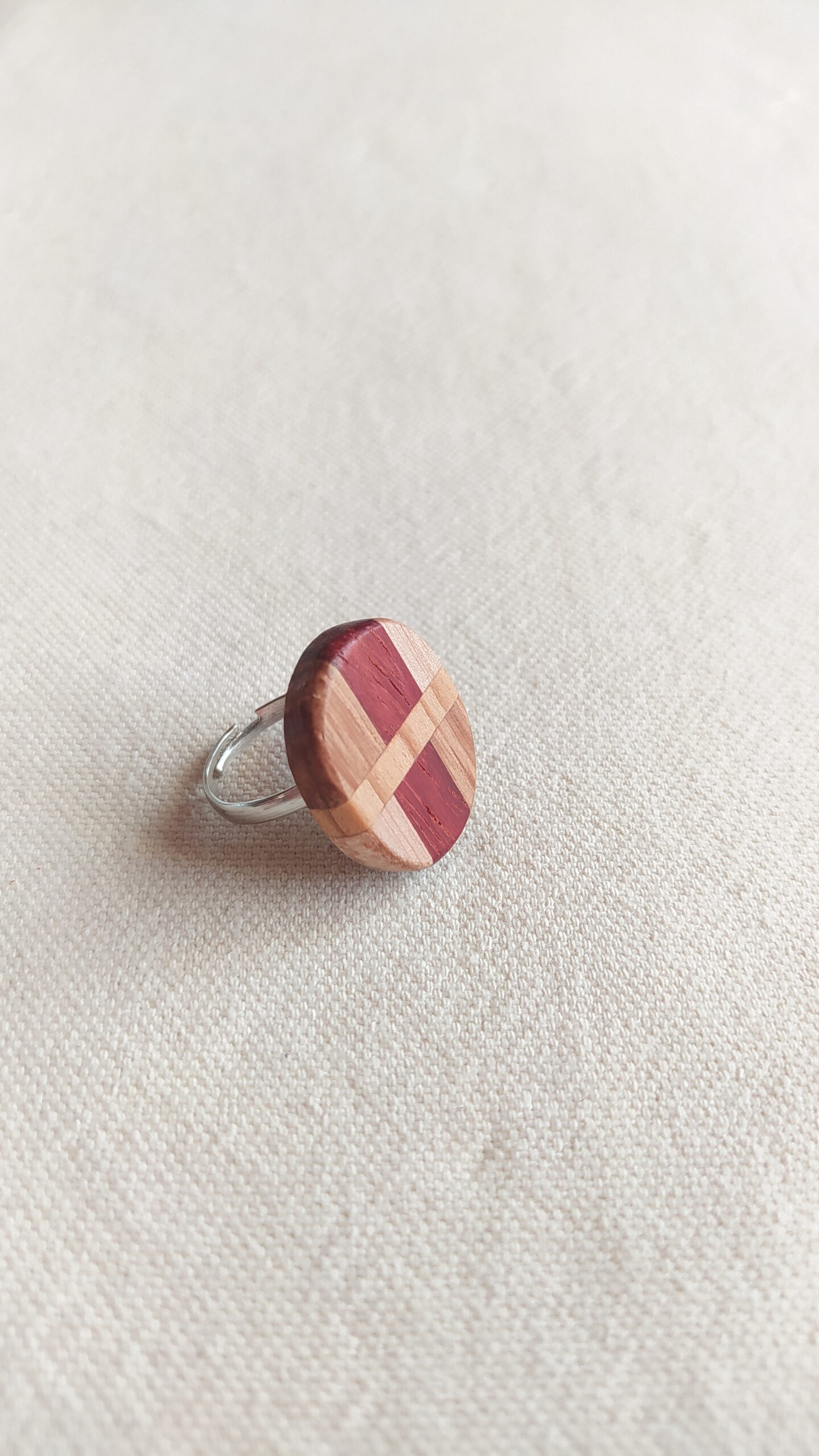 Bague ajustable en bois d’acajou, cèdre et noyer