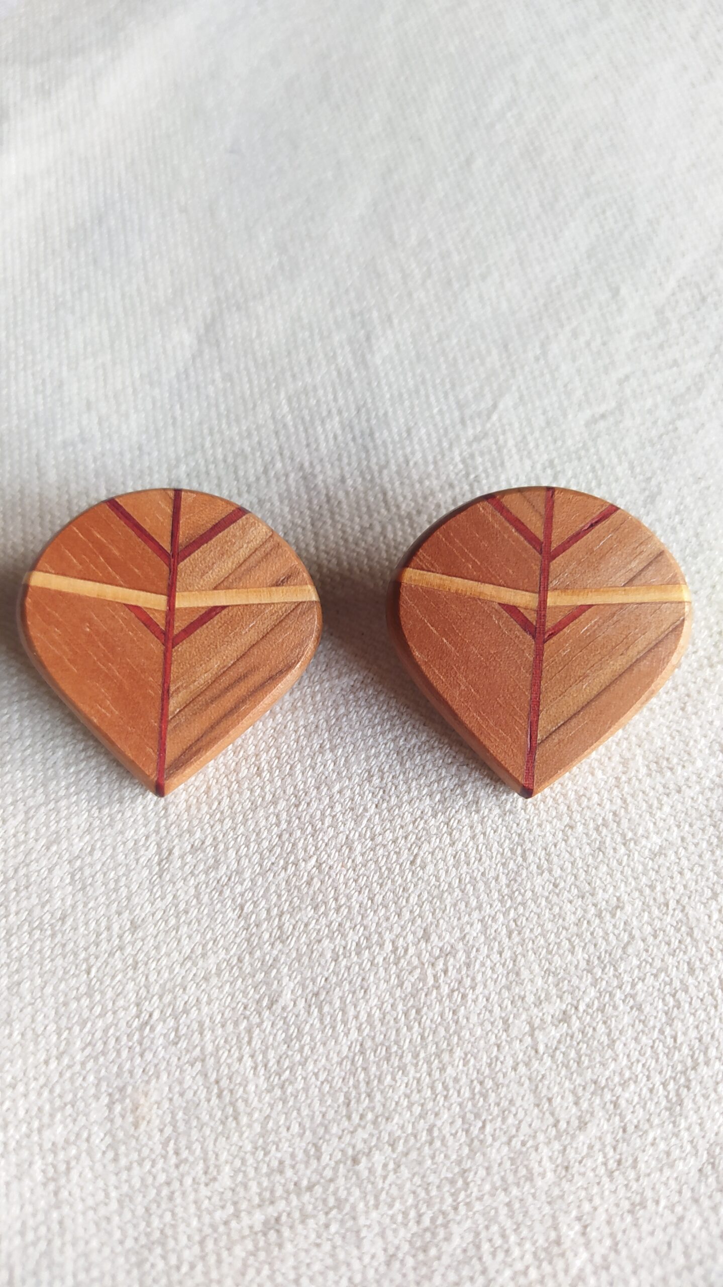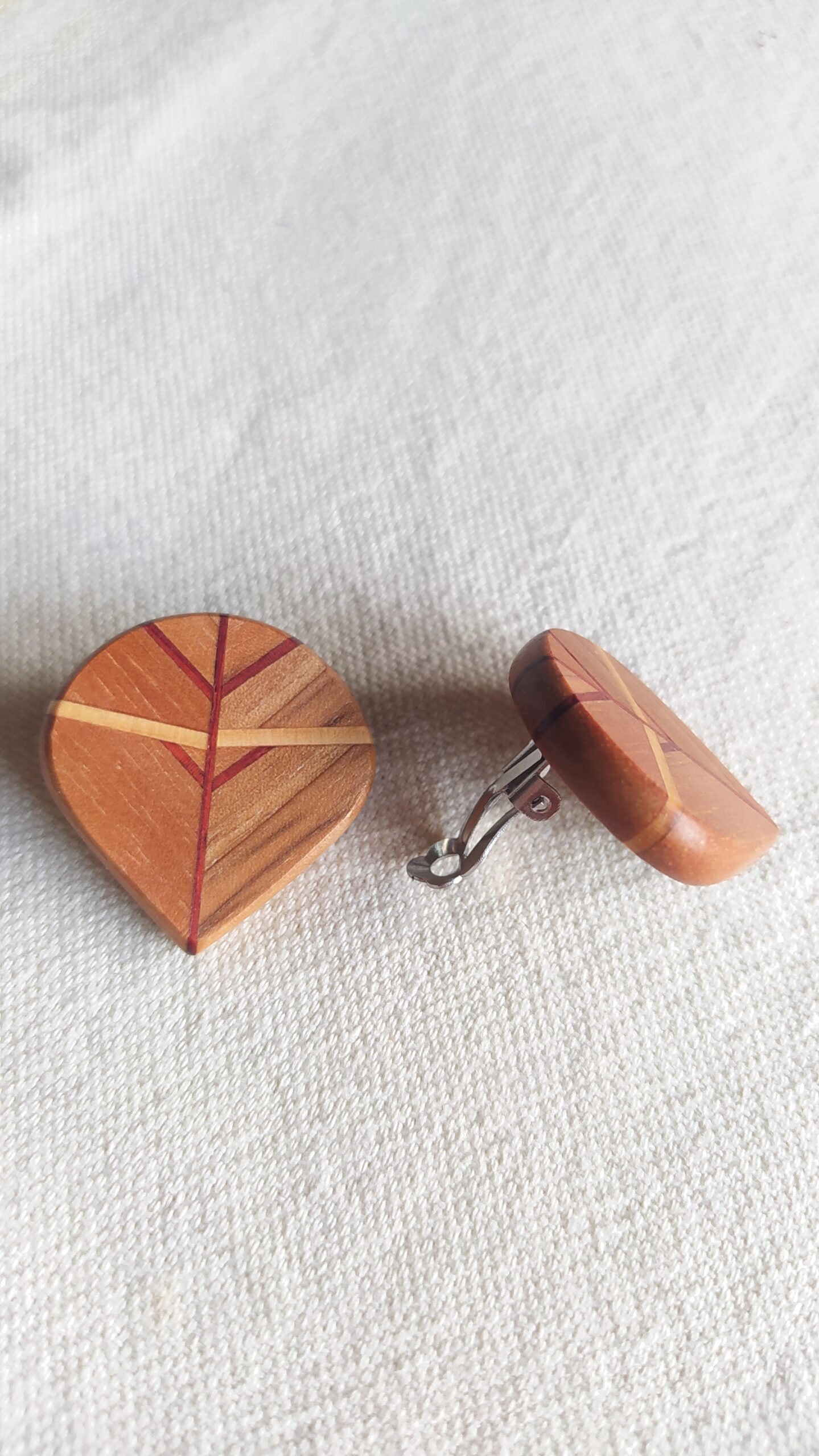 Boucle d’oreille en bois de noyer, cèdre et padouk