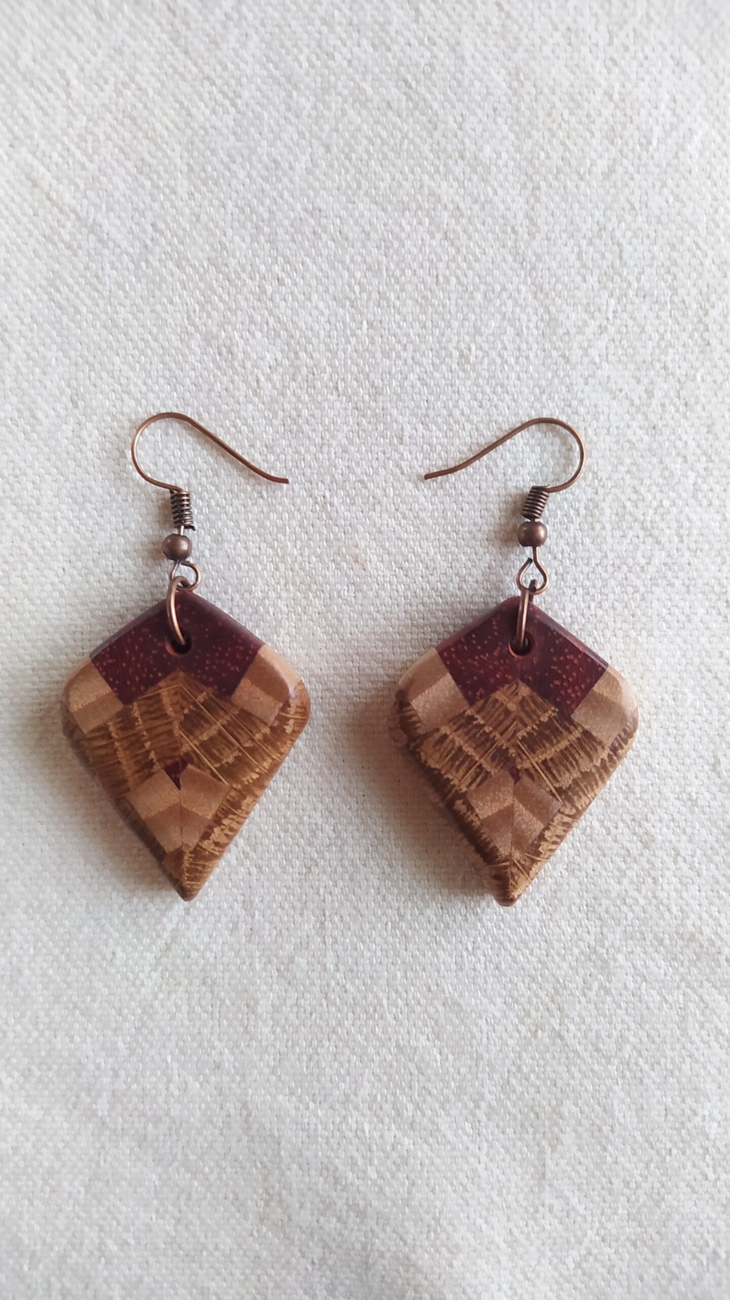 Boucle d’oreille en bois de chêne, frêne et noyer
