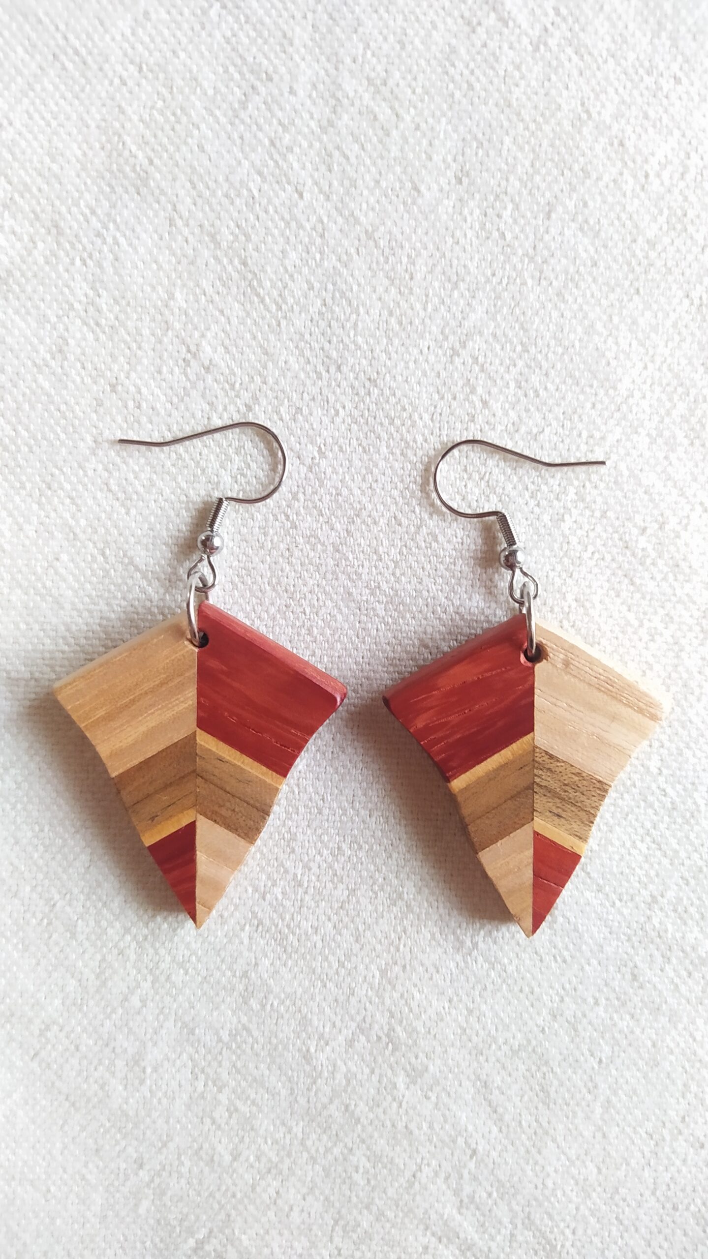 Boucle d’oreille en bois de cèdre, padouk, noyer et frêne